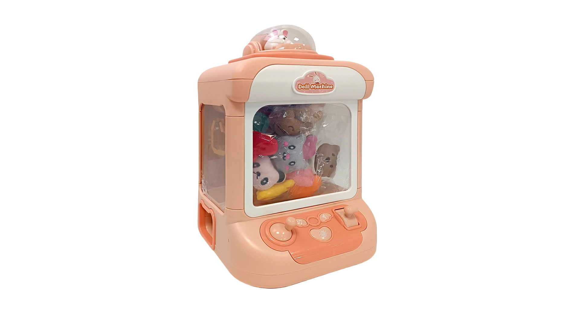 Miniaturní hrací automat ve stylu "chytání hraček" v něžné pudrově růžové provedení s roztomilým motivem králíčka na vrchu.