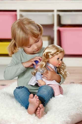 Hravé účesy a styl v růžovém Největší pýchou Sophie jsou její vysoce kvalitní blonďaté vlasy, které jsou jako stvořené pro nekonečné kadeřnické experimenty. Děti mohou Sophii česat, zaplétat copánky nebo zdobit přiloženým kartáčem na vlasy. Její tělíčko z měkké látky (tzv. "Soft Touch") je velmi příjemné na dotek, což ze Sophie dělá také perfektní společnici pro klidné usínání v postýlce.