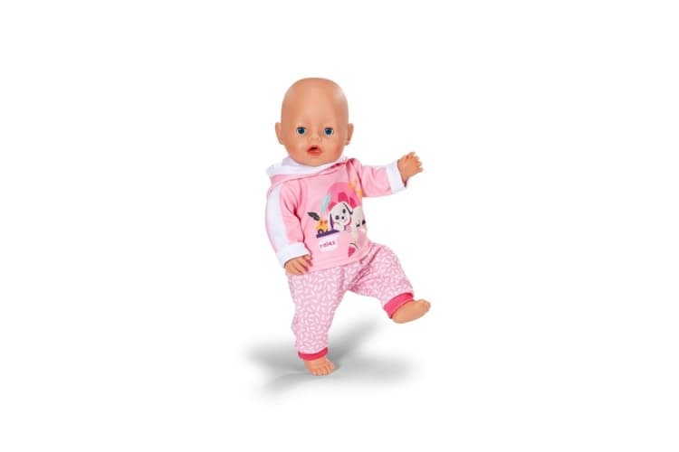 BABY born Teplákovka růžová (43 cm) – pohodlný dvoudílný outfit s potiskem Luckyho a Berty, snadné oblékání easy fit, ideální pro zábavnou a kreativní hru s panenkou.