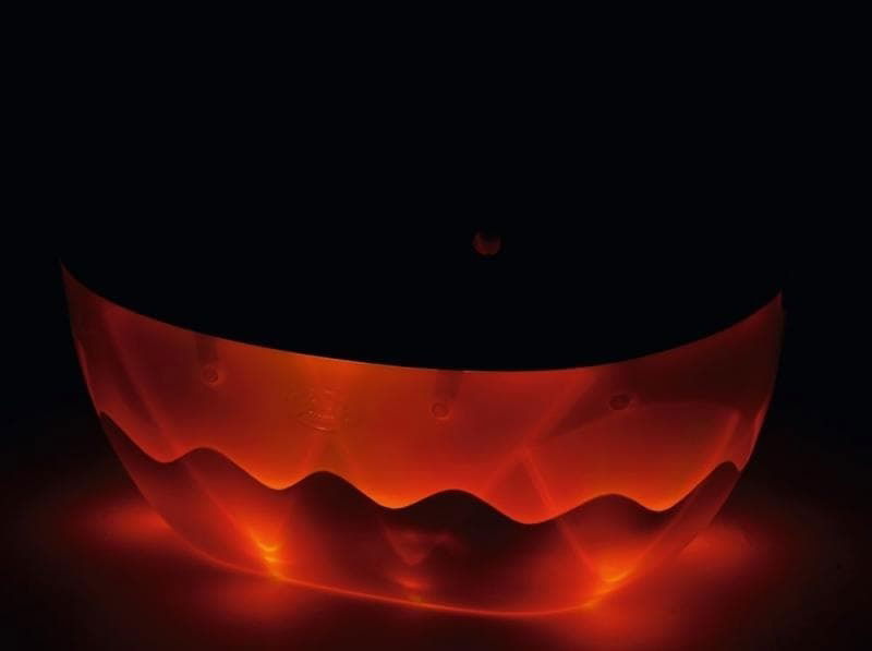 Když stiskneš tlačítko vedle sprchy, vnější plášť vany se rozsvítí v různých barvách.