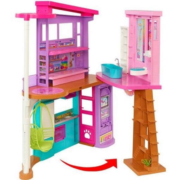 Tento Barbie® Párty dům v Malibu inspiruje k nekonečným hrám díky dvěma patrům a šesti hracím zónám včetně ložnice, koupelny, kuchyně, jídelny, obývacího pokoje a šatny.