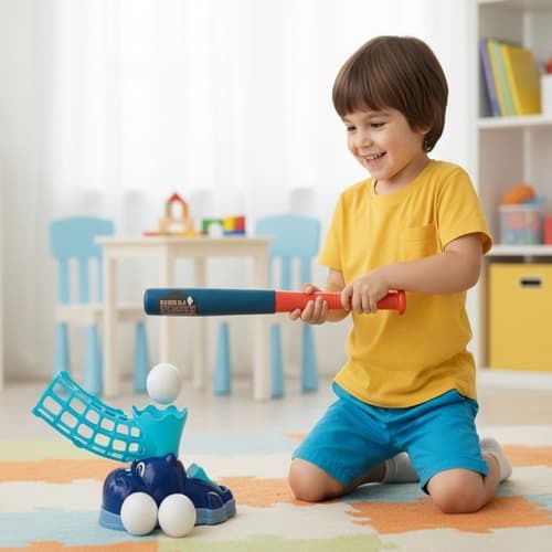 Ten následně automaticky vystřelí míček, a dítě tak může trénovat svůj odpal.