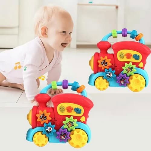 Hračka je vybavena různými tlačítky, pohyblivými částmi a předním světlem, které podněcují interakci a zvědavost dítěte.