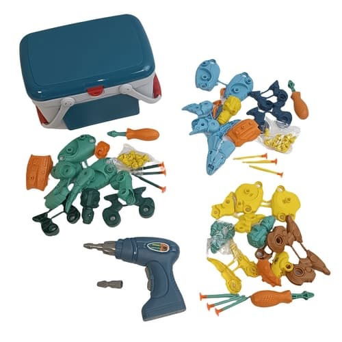 Šroubovací sada s dinosaury v praktickém boxu je kreativní a interaktivní stavebnice, která dětem umožňuje sestavit si vlastní dinosaury pomocí přiloženého plastového šroubováku nebo vrtačky.