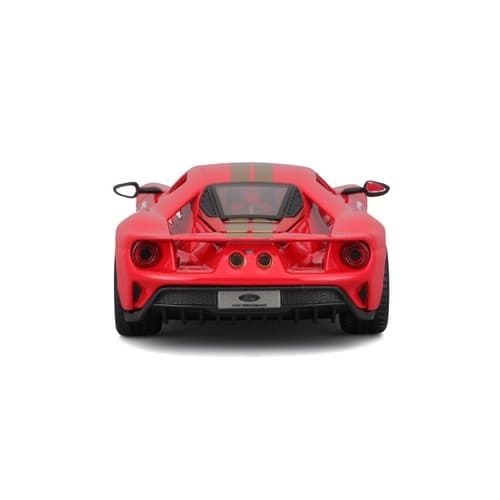 Moderní technika s duší šampiona Tento model věrně kopíruje radikální aerodynamické tvary moderního Fordu GT, včetně ikonických vzduchových tunelů (buttresses) a nízko posazené karoserie. Červený lak v edici Heritage dává vyniknout unikátním závodním číslům a detailům, které odkazují na počátky zlaté éry Fordu v Le Mans. Bburago přináší kousek, který v sobě snoubí syrový výkon šestiválce EcoBoost s estetikou klasických závodních vozů.