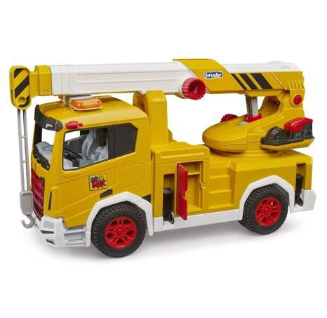 Robustní a mimořádně stabilní autojeřáb Bruder ze série ROADMAX s funkčním otočným a výsuvným ramenem je ideálním strojem pro bezpečné stavění a tvořivou hru dětí již od 2 let.