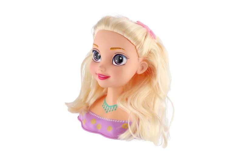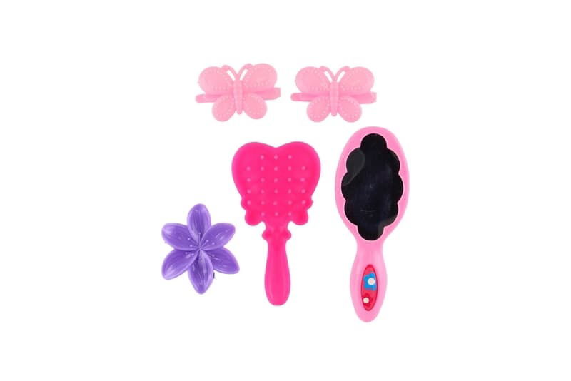 Sada s česací hlavou, kde je několik vlasových doplňků.