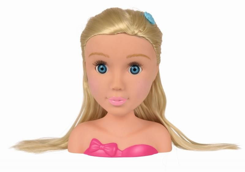 Česací hlava pro zkoušení trendy účesů a make-upu. Vlasové i kosmetické doplňky součástí. Celkem obsahuje 16 ks. Výška hlavy 19 cm...