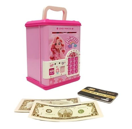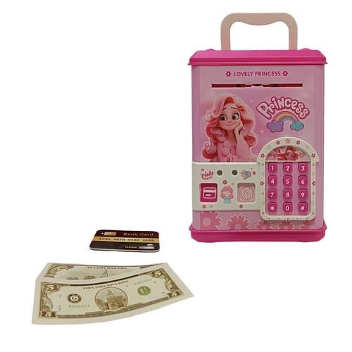 Trezor má atraktivní růžový design s motivem princezny a je vybaven elektronickými funkcemi, které simulují skutečný bankomat nebo trezor.
