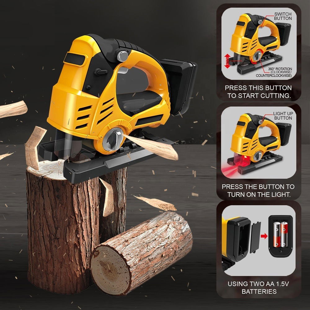 - Elektrická přímočará pila: Věrná simulace skutečného nástroje pro zábavné "řezání".