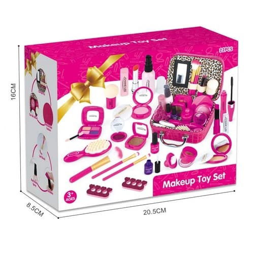 - Kompletní sada v kufříku: Obsahuje velké množství realistických atrap kosmetiky a doplňků, které lze uložit do růžového kosmetického kufříku.