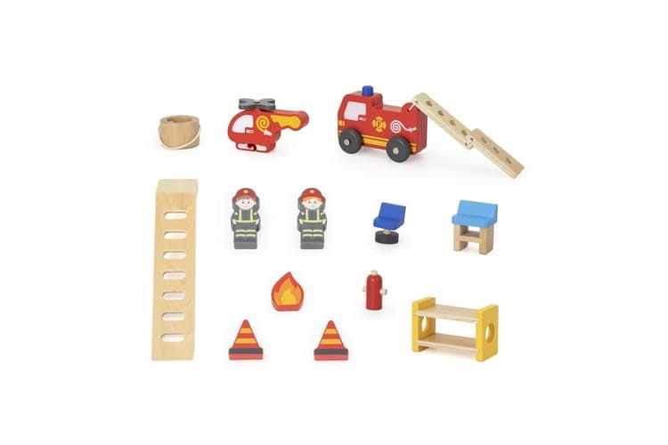 Dřevěná hasičská stanice je propracovaná třípatrová herní sada, která dětem nabízí svět napínavých záchranných misí a dobrodružství. V přízemí se nachází garáž pro hasičské auto a prostor pro uložení důležitého vybavení. Druhé patro slouží jako odpočinková místnost pro hasiče s funkčním zvonkem a skluzavkou, po které mohou hasiči rychle sjíždět dolů při poplachu. Na třetím patře je přistávací plocha určená pro vrtulník, který pomáhá při zásazích z výšky.
