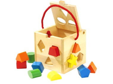 Dřevěná kostka se zastrkovacími tvary je klasickou vkládačkou pro nejmenší děti.