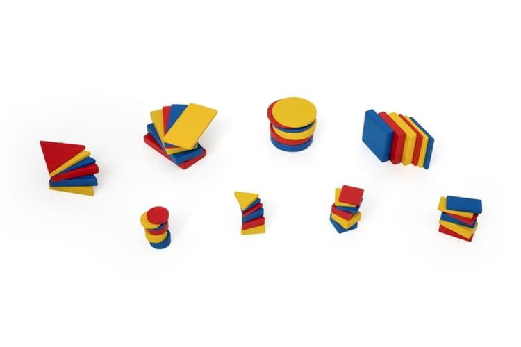 Sada 48 dřevěných logických bloků pro rozvoj kreativity, motoriky i poznávání tvarů a barev.