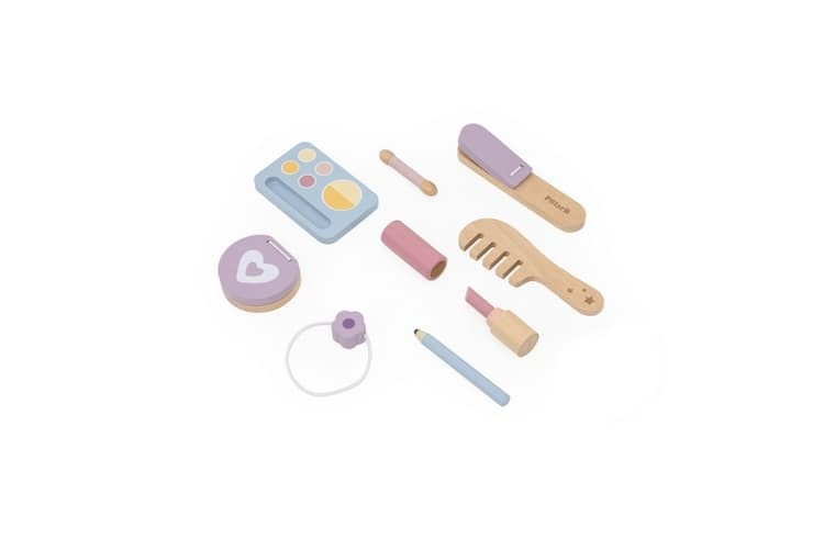 Dřevěná toaletka je krásnou herní sadou pro malé parádnice, které si rády hrají na zkrášlování a objevují svět fantazie. Součástí je stoleček s elegantním designem a sada dřevěných doplňků, mezi které patří například hřebínek, kulma nebo make-up. Kvalitní zpracování zajistí dlouhou životnost a bezpečné používání. Celek podporuje kreativitu, jemnou motoriku i rozvoj sociálních her, kdy si děti mohou hrát samostatně i společně s kamarádkami nebo rodiči.