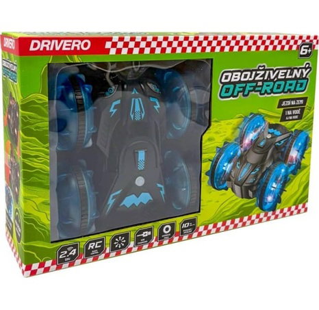 Připravte se na neomezené dobrodružství s tímto úžasným obojživelným RC autem z oblíbené řady Drivero! Tento odolný modrý offroad nezastaví žádná překážka – bravurně si poradí s náročným terénem na souši, ale stejně tak bezpečně umí plavat a jezdit po vodní hladině. Díky oboustranné konstrukci a velkým kolům se při nárazu do zdi nebo po skoku jednoduše přetočí a plynule pokračuje v jízdě dál. Fantastickým bonusem jsou speciální průhledná kola vybavená zářivými LED diodami, která při jízdě za šera vytvářejí poutavou světelnou show. Výkonná dobíjecí baterie zajistí až 20 minut vzrušující jízdy rychlostí přes 10 km/h, zatímco vysílačka na frekvenci 2,4 GHz umožňuje nerušené závodění více modelů najednou.