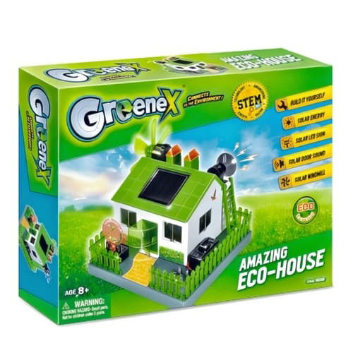 Tato STEM stavebnice "Amazing Eco-House" (Úžasný ekologický dům) je ekologicky zaměřený projekt ze série Greenex, který umožňuje dětem snadno sestavit vlastní model solárního ekologického domu.