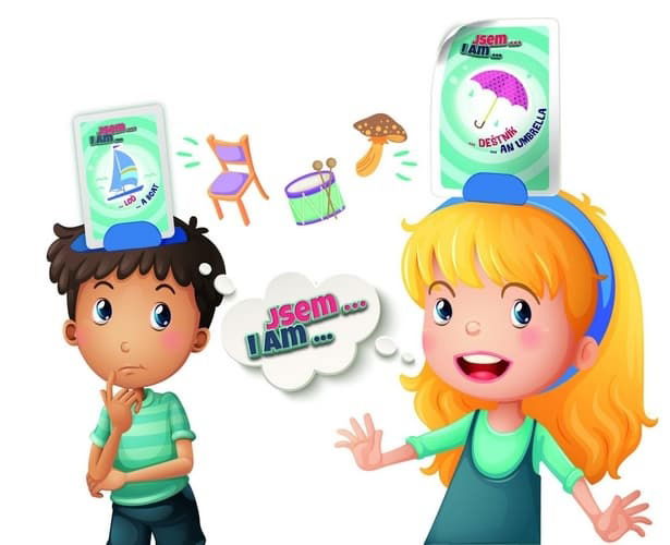 Zábavná společenská hra pro celou rodinu. Hra, která zaručeně rozesměje celou rodinu nebo partu přátel. Veselá hádací hra, při které si hráči nasazují čelenku s kartičkou a snaží se pomocí otázek uhodnout, kým nebo čím jsou. Formou hry si hráči osvojí také 80 anglických slovíček. Nasaď si čelenku, vyber si kartu a pomocí otázek, na které ti mohou spoluhráči odpovídat pouze ANO nebo NE, zjisti, co je na obrázku. Cílem hry je nasbírat co nejvíce žetonů za správné odpovědi v limitu přesýpacích hodin.