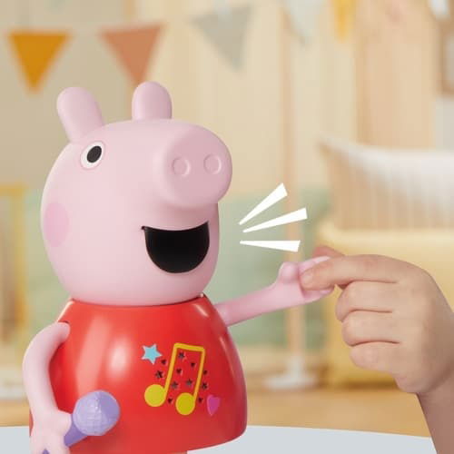 Mluvící a zpívající prasátko Peppa Pig. Díky více než 50 frázím, písním a zvukovým efektům bude hra s mluvícím a zpívajícím prasátkem Peppa tak zábavná. Tato super roztomilá hračka pro dívky a chlapce mluví, hraje a zpívá čtyři písničky, výměna režimů je stejně snadná jako pohyb jejího mikrofonu nahoru nebo dolů. Děti mohou pohybovat její paží, aby se její ústa pohybovala a slyšely ji mluvit nebo zpívat. Malé prasátko dokáže předstírat, že skáče do blátivých louží, aby předvedlo šplouchající zvukové efekty. Prasátko mluví a zpívá pouze v angličtině. Popis a varování jsou v českém jazyce.