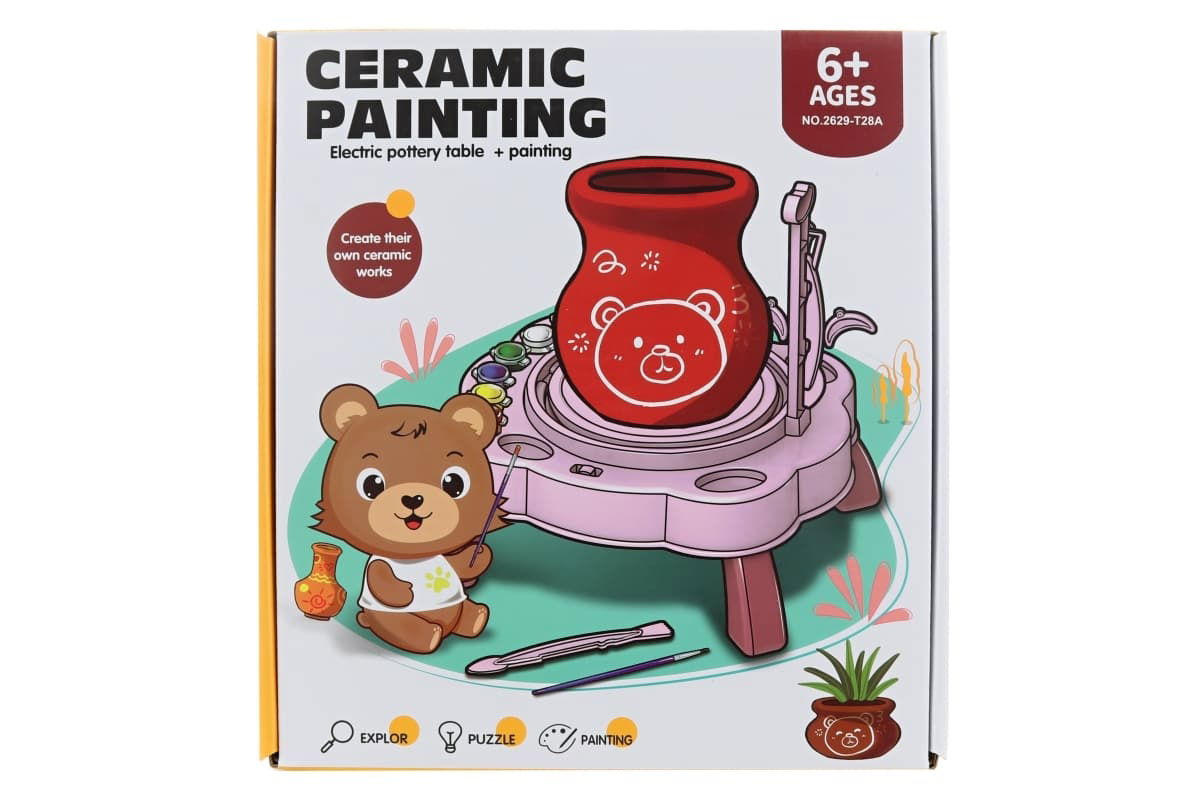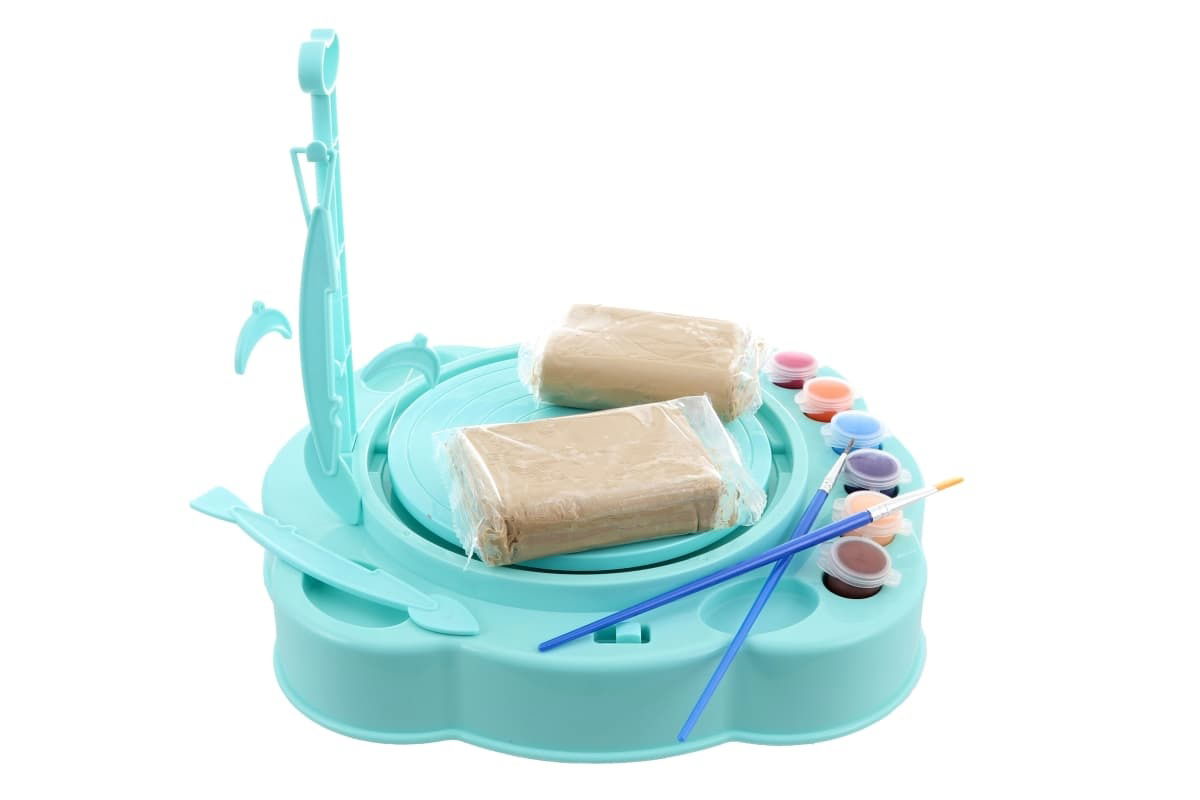 Skvělá zábava pro tvořivé děti. Hrnčířský kruh je napájen na 4 AA baterie, které nejsou součástí balení. Balení obsahuje kruh s nožičkami, 2 sáčky s hlínou, 2 š...