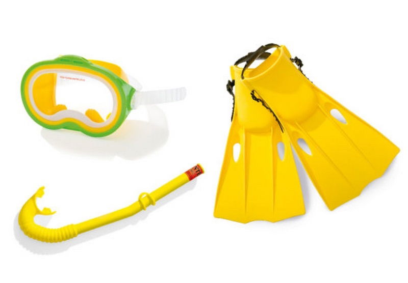 Potápěčská sada vhodná pro děti od 3 do 10 let. Sada obsahuje šnorchl, plaveckou masku a plovací ploutve.