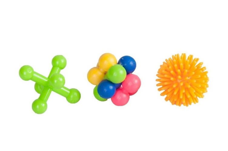 Hračka pro kočky gumová ve třech různých tvarech a třech různých barvách v jednom balení.