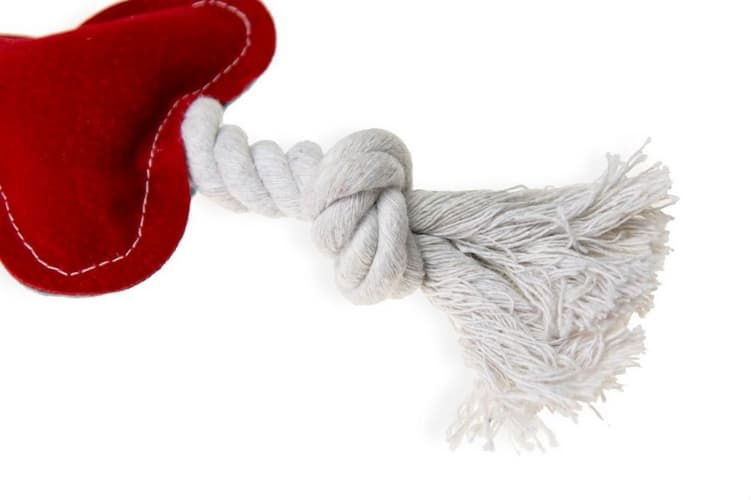 Tato dvoubarevná, měkká hračka v kombinaci imitace kůže a bavlněného provazu je obzvláště vhodná pro štěňata. Hračka neobsahuje pískátko a je šetrná k zubům.
