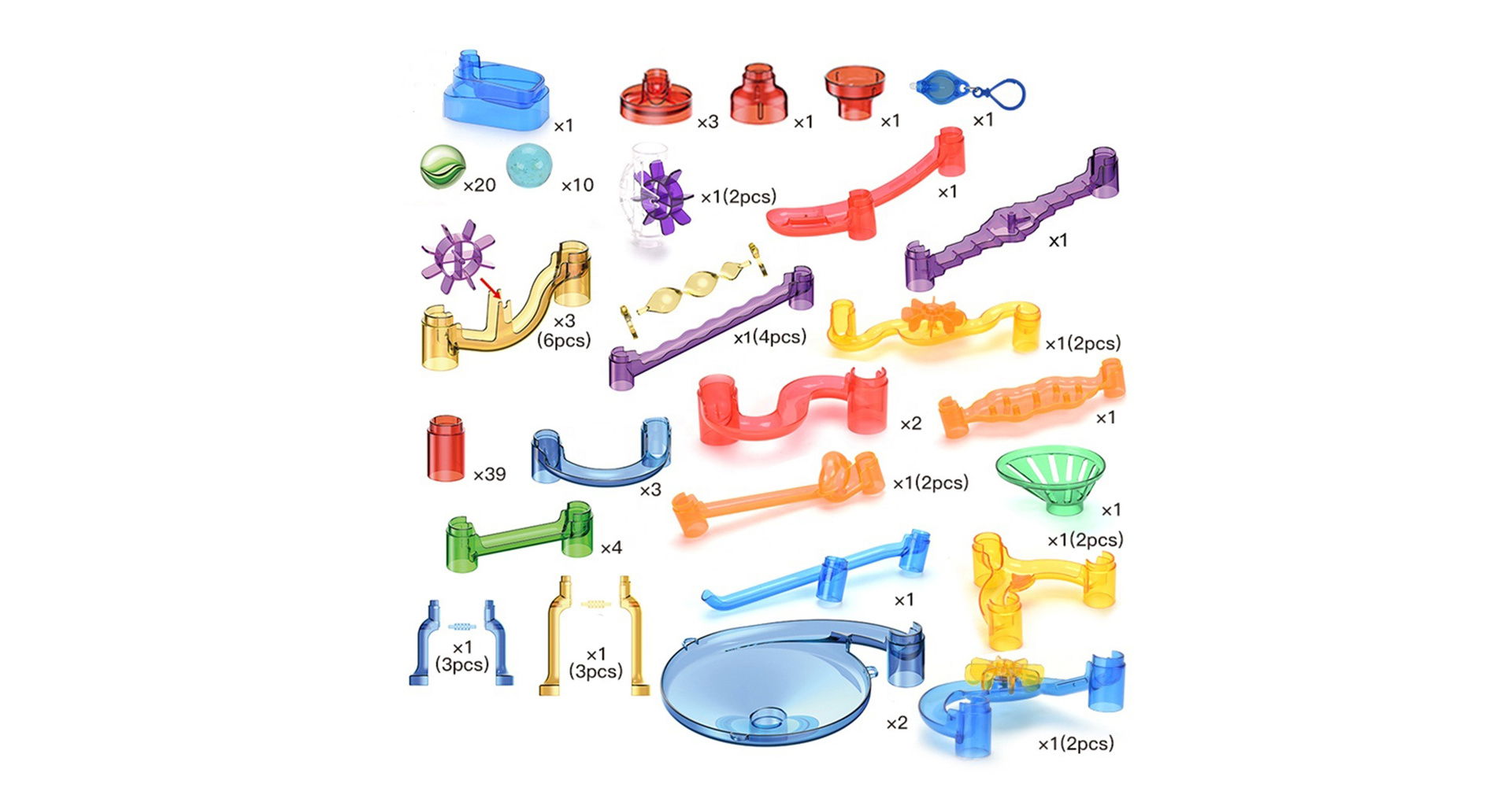 - Stavebnice pro sestavení komplexní kuličkové dráhy s mnoha speciálními prvky.