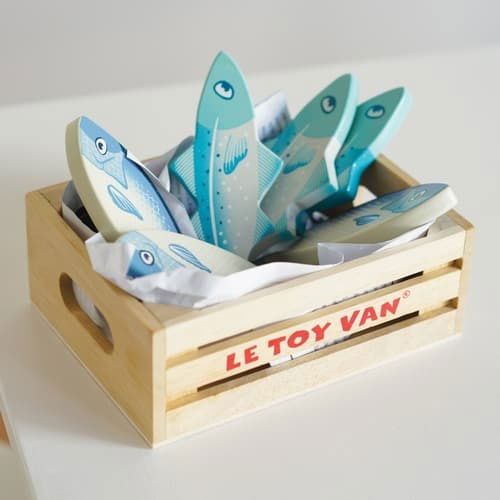 Perfektní den pro nákupy na trhu. Tato krásná dřevěná hračka je perfektní pro hraní na role, rozvíjí představivost dětí. Tato chutná bedýnka s rybami naučí děti o různých typech potravin a zdravé stravě. Každý díl je vyroben z odolného, udržitelného dřeva a malován netoxickými barvami. Velikost tak akorát pro dětské ruce, ideální hračka pro rozvoj koordinace ruka-oko a zlepšování jemné motoriky.