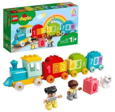 Nenechte si ujet barevný model ze sady LEGO® DUPLO® Vláček s čísly – Učíme se počítat (10954). S 10 očíslovanými kostkami, které mohou děti nakládat a vykládat, stavět na sebe nebo řadit, a DUPLO figurkami dívky, chlapce a pejska nebude brát hraní ani zábava konce.