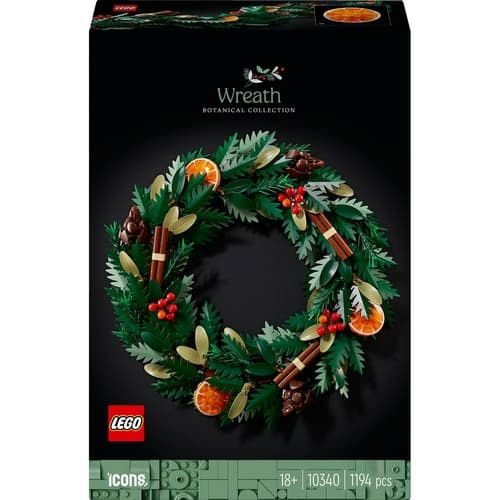 LEGO® Icons 10340 Věnec je designová stavebnice pro dospělé, která nabízí relaxační stavění a výsledný dekorativní prvek vhodný do každého interiéru.