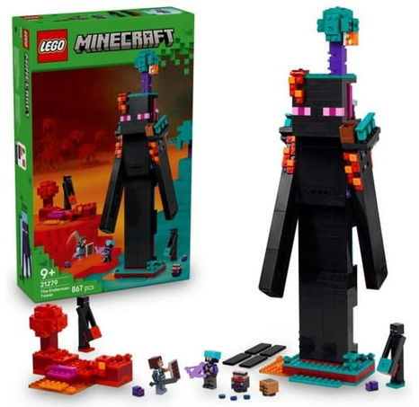 LEGO Minecraft 21279 Endermanova věž spojuje akci, kreativní stavění a autentické detaily ze hry Minecraft v jedné velkolepé stavebnici pro děti od 9 let.