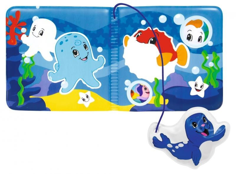 Knížka do vody pro nejmenší s pískacím přívěskem. Má 8 stran s obrázky mořských zvířátek. Rozměr zavřené knížky: 13x13cm...