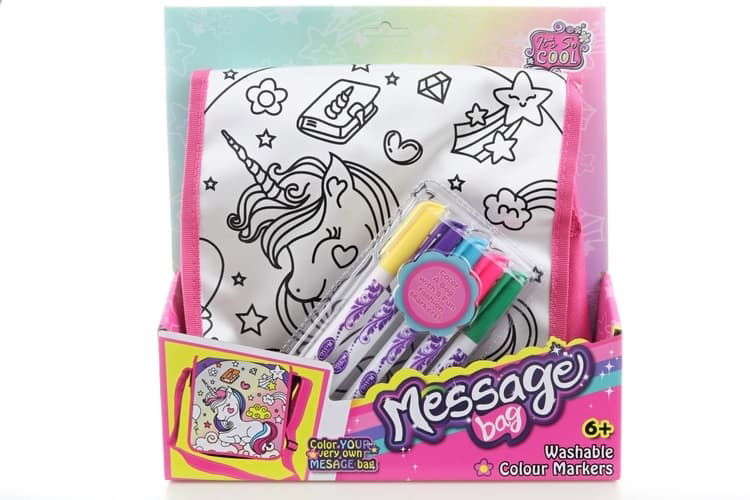 Vybarvovací kabelka s motivem jednorožce. Kabelka má zapínání na suchý zip a obsahuje růžový popruh. V balení kabelka a 5 barviček. Baleno v otevřené krabičce...