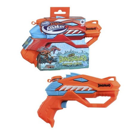 Vodní blástr Nerf DinoSquad Raptor-Surge zachycuje vzhled dinosaura Velociraptora a je příslibem opravdu divoké letní zábavy.