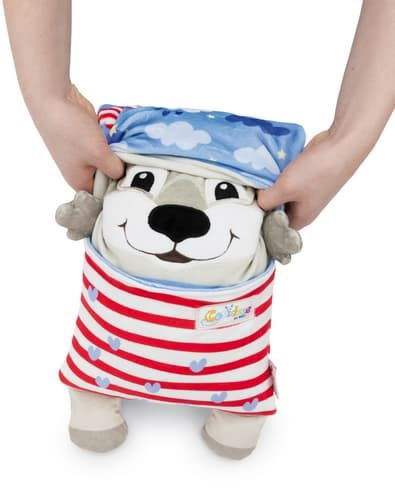 Pejsek Cosidoos je nadýchaná plyšová hračka, kterou lze snadno proměnit z veselého denního společníka v uklidňující zvířátko a polštářek na spaní.
