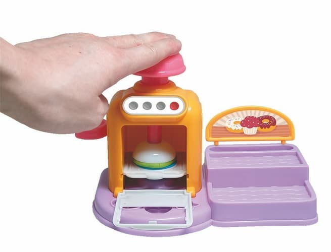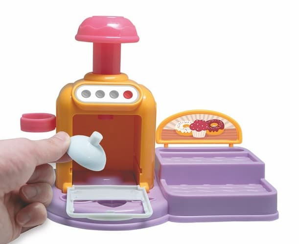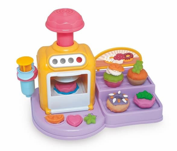 Sada modelíny, velké množství tvořítek a pečící trouba, ve které si děti upečou své dobroty. Vymodeluj dortík a dej do do trouby.