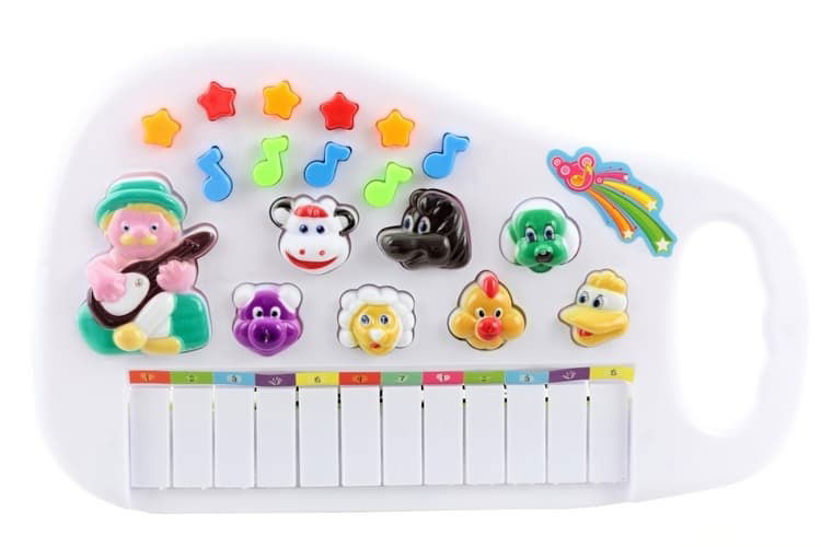 Piánko obsahuje 12 kláves, 7 tlačítek se zvuky zvířátek a 10 tlačítek s různými tóny. Materiál plast. Napájení na 3xAA baterie, které nejsou součástí balení. Ba...