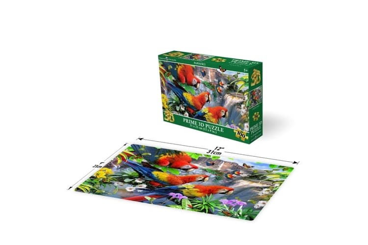 3D puzzle s motivem papoušků. Balení obsahuje 100 dílků. Rozměry balení 23x15x5 cm. Rozměry složeného obrázku 31x23 cm. Věk 5+...