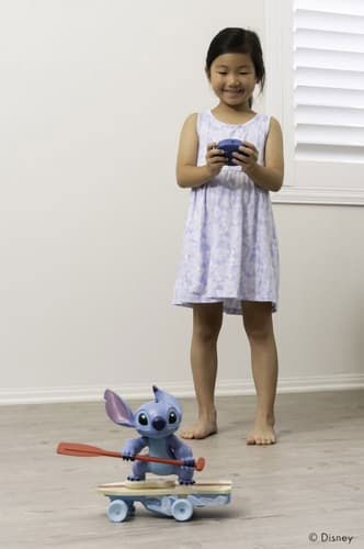 RC Stitch Surfař na dálkové ovládání. 1 kanál (jezdí dopředu, vzad zatáčí), frekvence 2.4 GHz. Když Stitch spadne umí se sám zvednout zpátky. Délka 25 cm...