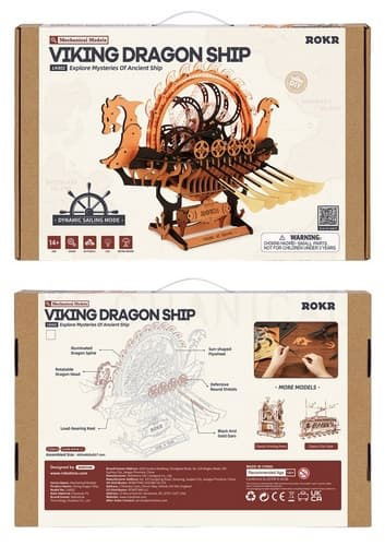 Mechanické 3D puzzle Robotime inspirované vikingskou dračí lodí. Model obsahuje 229 dílků, pohyblivá vesla a LED podsvícení dračí páteře. Sestavení probíhá zcela bez lepidla. Napájení přes USB-C. Doporučený věk 14+.