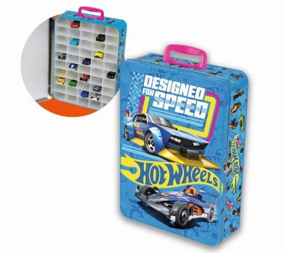 Plechový sběratelský kufřík Hot Wheels na 50 autíček je praktickým a stylovým doplňkem pro všechny malé závodníky i sběratele.