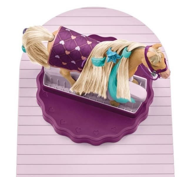 Péče v hřebelcovací stanici je tak úžasná, že se koni ani nechce pryč. Kůň si hřebelcování a mytí houbičkou vážně užívá. Aby hříva a ocas rychleji uschly, máš v šuplíku po ruce fén. A teď můžeš začít se stylingem. Svému koni můžeš do hřívy připnout korálky, mašle nebo květiny, případně mu můžeš připnout další pramen do hřívy. Aby všichni věděli, že jsou nerozlučná dvojka, mají kůň i jezdec stejné doplňky. Deka a vesta mají stejný vzor a dokonce i návleky ladí s páskou na ruku.