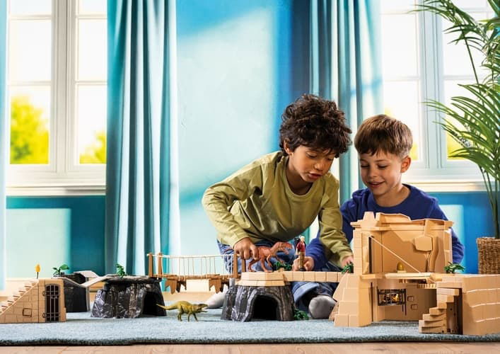 Flynn se nemůže dočkat, až se dostane do chrámu! Je tam ukrytý cenný poklad. Problém je v tom, že chrám hlídají dva dinosauři – Monolophosaurus a Postosuchus! Oba masožravci ho pronásledují na každém kroku. Nyní musí nejen najít správnou cestu, ale také utéct před dinosaury. Chrámový komplex je skutečnou překážkovou dráhou. Pokaždé vypadá jinak, protože se dá vždy znovu sestavit. Nebezpečí číhá na každém rohu. Flynn opatrně balancuje na ztrouchnivělém visutém mostě. Hotovo. Chrám je teď přímo před ním. Stoupá po schodech, když se náhle promění ve skluzavku. Pomoc! Jak se může dostat z této místnosti? Když najde správnou kombinaci spínačů, stěna se otočí a uvolní mu cestu. To bylo těžké! A teď ještě musí v tajných skrýších najít všechny klíčové součástky ke dveřím do chrámu. Než to stihne dokončit, spadne do síťové pasti. Kdo mu dokáže pomoci ven?