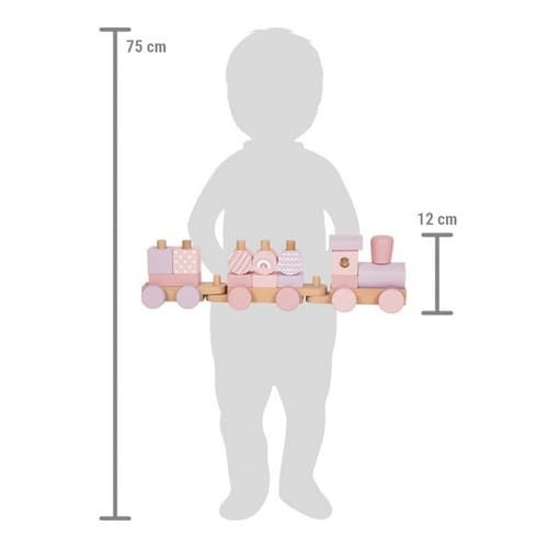Rozměry lokomotivy: 15x8x12 cm Rozměry kvádru: 7x4x4 cm Věk: 12m+ Materiál: dřevo Počet dílů: 17
