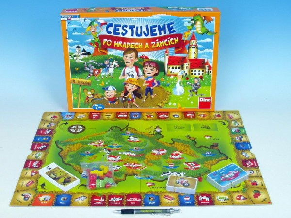 Cestujeme po hradech a zámcích je poučná rodinná hra. Během hry objevíte zajímavá místa, poznáte jejich historii a dozvíte se pověsti z dob dávno minulých. Je pouze na vás, zda budete cestovat pěšky, na motorce nebo autem. Cestou vás neminou nutné výdaje, ale můžete si i vydělat. Obratné hospodaření a taktika ve hře hrají velkou roli. Vyhrává hráč, který má na konci cesty nejvíc peněz. Hra prohlubuje místopisné znalosti, procvičuje samostatné rozhodování a přináší zábavu.