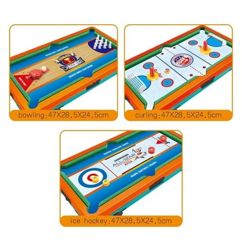 Multifunkční stolní sada, ve které najdete fotbal, kulečník, bowling, curling, hokej, golf i basketbal v jednom kompaktním provedení.