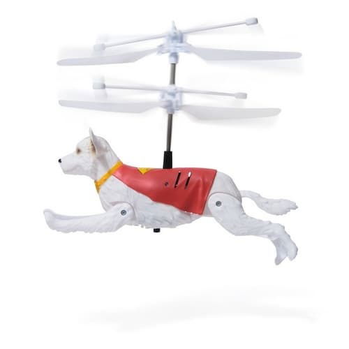 Interaktivní létající pes Krypto. Zapněte jej na břišní straně. Rozočí se vrtule a začne se vznášet. Pomalu ve vzuchu klesá, ale má senzor a pokud pod něj dáte...
