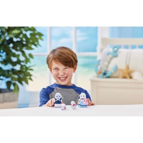 Sada Rodina tuleňů obsahuje 4 figurky roztomilých postaviček ze země Sylvanian Families. Figurky jsou pokryté sametově hebkým kožíškem a mají pohyblivé hlavičky, ručičky a nožičky. Tuleni mají roztomilé zaoblené tvary. Všichni mají stejné charakteristické vrásky nad očima, které připomínají obočí, ušní jamky a fousky. Figurky jsou oblečeny do rozkošných námořnických uniforem. Táta Maurice Floater je skvělý plavec. Kdysi měl přezdívku Mořský blesk z Cape Sea Breeze, ale teď se spíše povaluje a lenoší. Nereaguje ani na to, když ho děti šťouchají do břicha. Maminka Amory Floater je vřelá, přátelská a starostlivá. Kupuje svým dětem spoustu hraček a často říká: „Zatím to zmrazíme!´´ Věří, že když něco zmrazí, čas se zastaví, takže má vždycky přeplněný mrazák. Malý Puffy Floater je velmi opatrný. Když je ve vodě, nedá plavecký kruh z ruky a závistivě se dívá na svou sestru Moffy, která už umí velmi dobře plavat. Každý den trénuje plavání s tatínkem, protože už chce plavat sám! Moffy Floater je velmi aktivní. Je pravým opakem svého bratra. Rychle se naučila plavat, skáče do vody a cáká na všechny kolem. Hra s figurkami Sylvanian Families podporuje představivost. Hračky Sylvanian Families jsou známé svou prvotřídní kvalitou a pečlivým zpracováním každého detailu.
