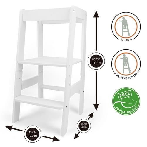 3. Dítě může vylézt na výukovou věž samostatně, schod od podlahy je ve výšce 20 cm, což pomáhá dítěti dostat se na věž